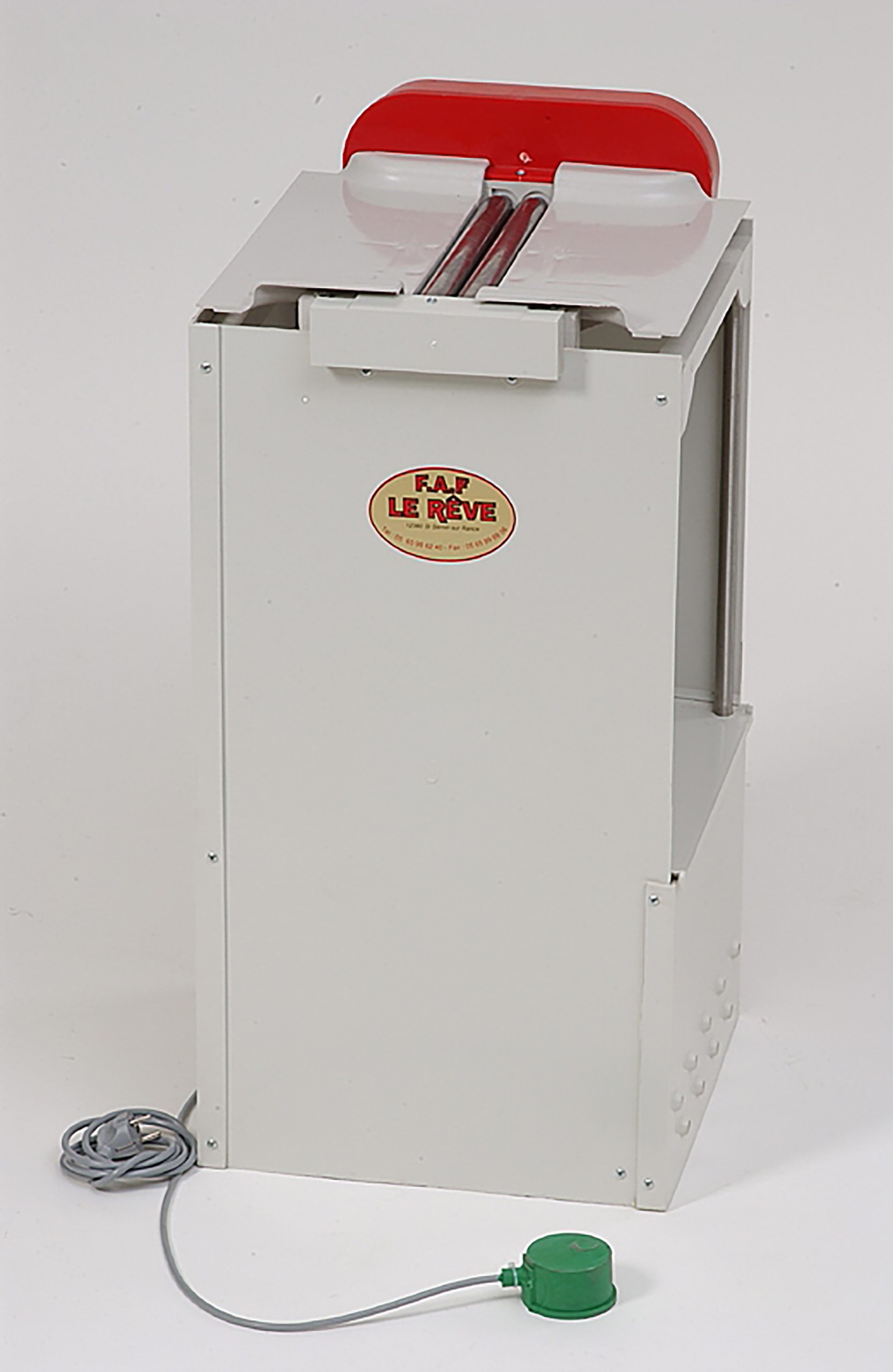 Cette plumeuse est équipée de deux rouleaux en inox qui tournent l’un vers l’autre pour un épilage rapide, efficace et sans effort. La plume mouillée adhère naturellement au rouleau, qui en pivotant, retire délicatement le duvet et les plumes de la volaille.