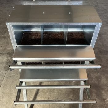 Pondoir collectif 1m pour poules pondeuses d’une capacité de 36/54 poules pondeuses bio et jusqu’à 51/77 poules pondeuses conventionnelles. Il est équipé d’un grand bac de collecte à l’arrière et un tapis de ponte spécialisé. Il est entièrement fabriqué en acier galvanisé et il est très facile et rapide à monter.